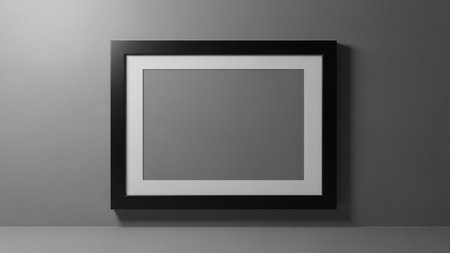 A black frame with a white border sits on a white wall. The white background of the frame contrasts with the black border, creating a sense of balance and harmony