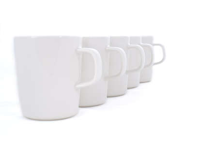Line of white cups,on white background