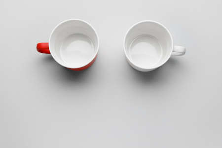 Empty cups on light background