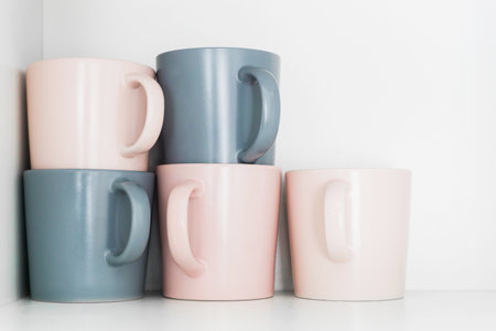 Coffee mugs stacked background.