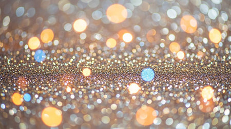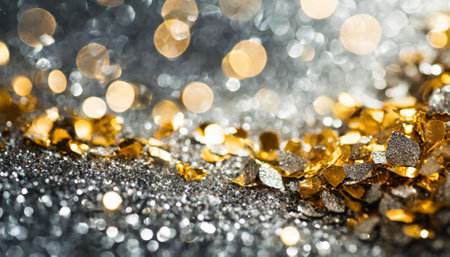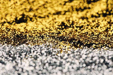 Shimmering decorative abstract silver and golden glitters with a dreamy blurred bokeh effect, offering a perfect background for Christmas themes, holiday greetings, festive designs, or elegant