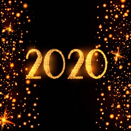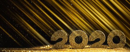 2020 New Year luxury design concept. Golden 2020 New Year horizontal template with golden glitter on black background