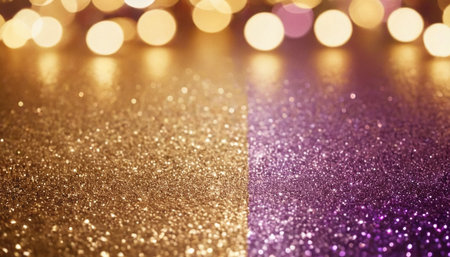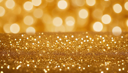 A stunning gold defocused glitter backdrop offers a glamorous touch, ideal for adding shine to any creative project or celebration.