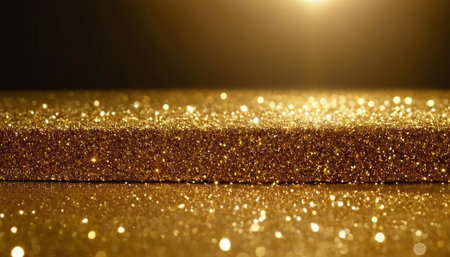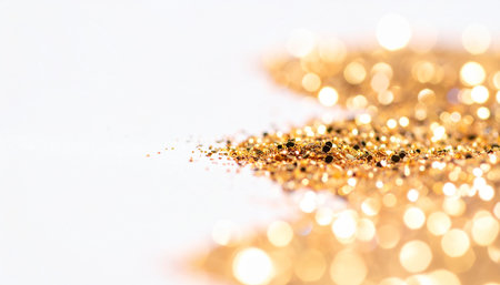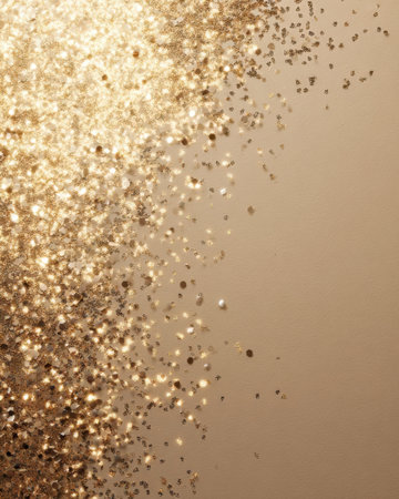 Sparkling gold glitter cascading on a smooth surface