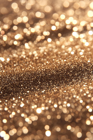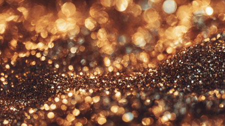 This stunning image captures the mesmerizing effect of sparkling golden glitter in soft focus, perfect for artistic, festive, or celebratory backgrounds and designs.