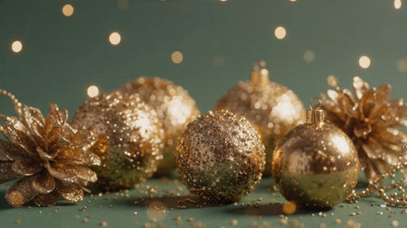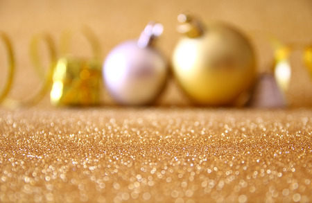 Golden christmas balls on glitter