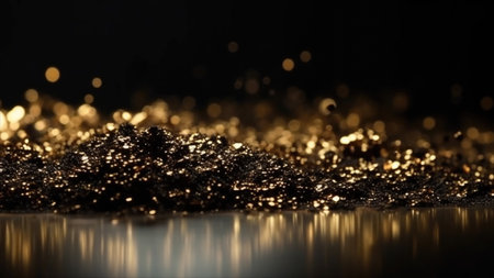 A captivating scene of sparkling gold dust with a dreamy bokeh effect. This artistic image showcases warmth and elegance, perfect for decoration or creative projects.