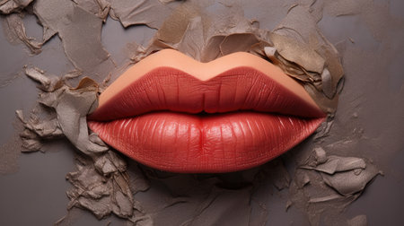 This close-up photograph captures a pair of vibrant red lips, showcasing intricate texture and a touch of glamour. Perfect for beauty and fashion themes.