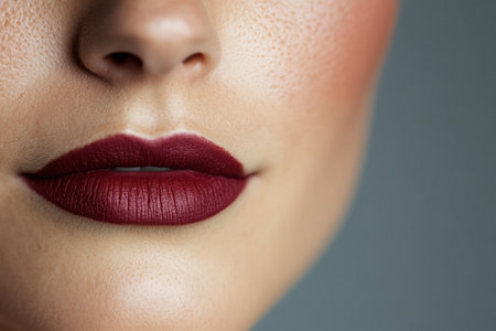 Close-Up of Lush Lips with Maroon Lipstick Glamorous Makeup Trends for Females in Fashion Editorial