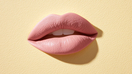 A stunning close-up of soft pink lips with a glossy finish, set against a bright yellow background. This image captures beauty and elegance in simplicity.