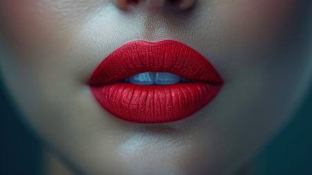 Stunning close-up image showcasing bold red lips, emphasizing rich color and smooth texture against a dark background, perfect for beauty and fashion themes.