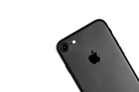 iPhone 7 black matte jetblack detail of new Apple product fingerprint sensor Home button isolated on white