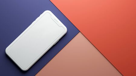 Smartphone mockup with blank screen on white marble background. 3d rendering