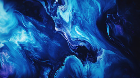 Fluid paint art, marble abstractions in blue, black.