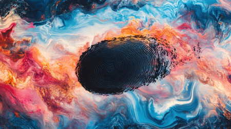 This captivating abstract image showcases colorful swirls and a unique circular pattern that creates depth and texture. Perfect for artistic design projects.