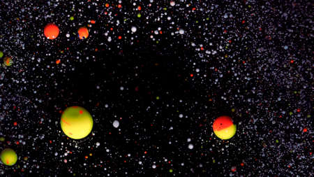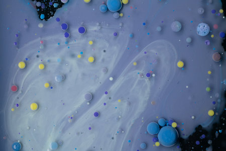 A myriad of oil droplets intermingling with water, creating a mesmerizing effect reminiscent of a galaxy.