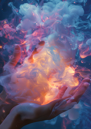 Flowing blue smoke creates a calming and serene atmosphere