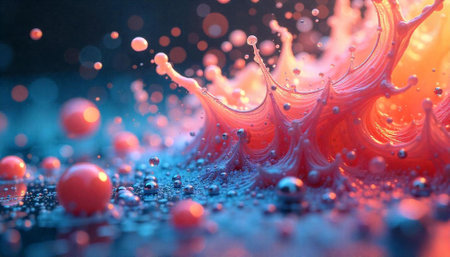 Macro image of liquid splash with bokeh effect background