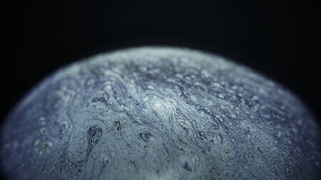 Bubble fluid. Oil liquid texture. Defocused dark black white paint in water round shiny drop spreading on abstract art background.