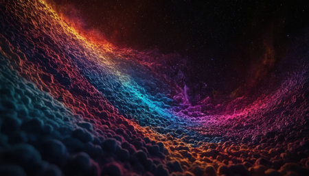 This stunning abstract image showcases vibrant colors and swirling patterns that evoke a sense of cosmic energy and creativity, perfect for various design projects.