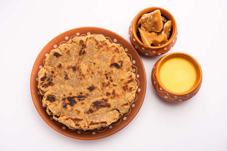 Sweet roti made out of rice flour, jaggery, and ghee. Gud ki roti. gur ki roti, jaggery Bhakri, meethi gud ki roti. Winter food. Copy space.