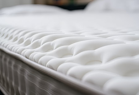 Comfortable White Mattress with Textured Surface in Bright Bedroom Setting.
