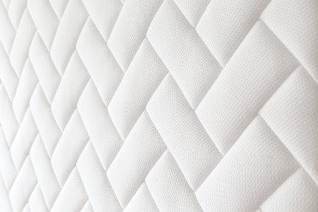 Close up shot of white orthopedic mattress top side surface pattern with a lot of copy space for text. Hypoallergenic foam matress for proper spinal alingment and pressure point relief. Background.