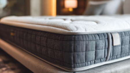 A modern mattress featuring a quilted design, placed on a stylish bed in an inviting bedroom environment with warm lighting for relaxation.