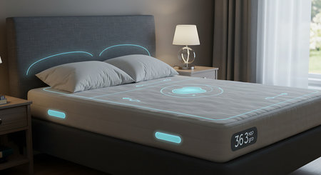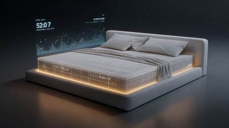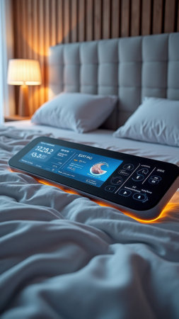 Sleek bed design features soft contours, glowing edges, and built-in technology for enhanced comfort and convenience.