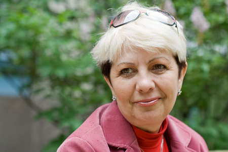 Portrait of mature gray haired elderly woman outdoor