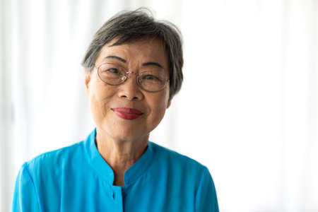 Portrait of happy senior adult elderly asia women smiling and looking at camera at home.Retirement concept