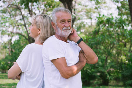 Happy old couple enjoy and relax in the park.