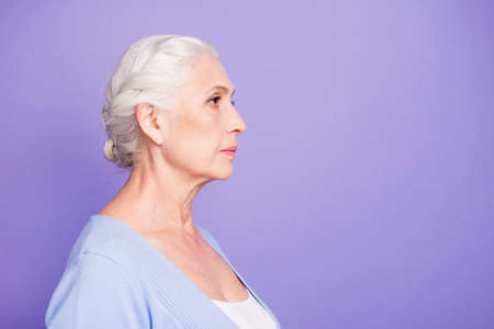Side profile view portrait of beautiful nice content serious gra
