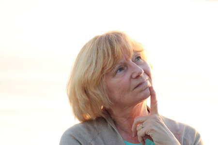 Thinking mature woman at sunset.