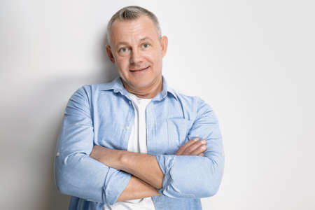 Portrait of handsome middle-aged man on light background