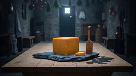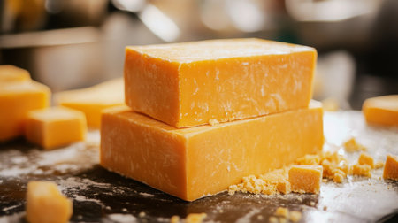 Production line showcasing ai-powered cheese processing with blocks of cheddar