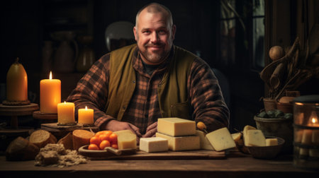 A man with a deep appreciation for cheese showcases his skill as a cheesemaker cheese in hands