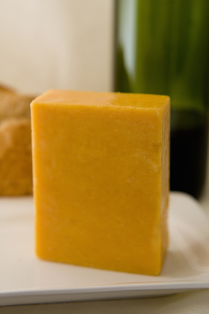 Cheese collection, piece of matured British yellow cheddar cheese made in Somerset from cow milk
