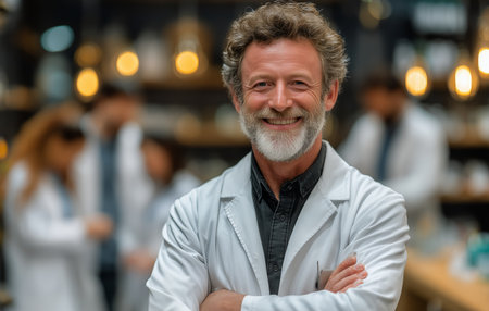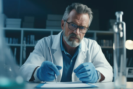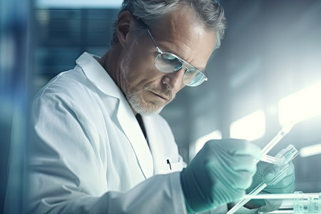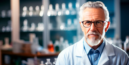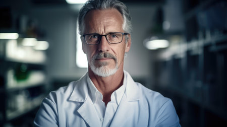 Portrait of senior male scientist working in laboratory. Generative AI