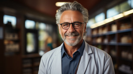Portrait of a senior male pharmacist in a drugstore.