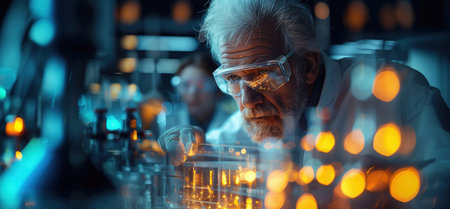 Focused Senior Scientist Analyzing Samples in Modern Laboratory