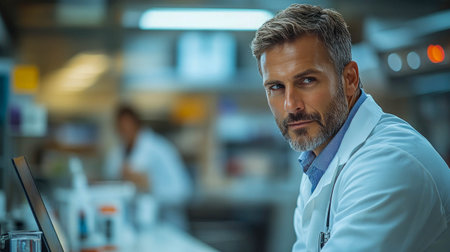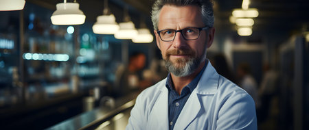 Portrait of a middle-aged researcher doctor working in a laboratory of a research institute.