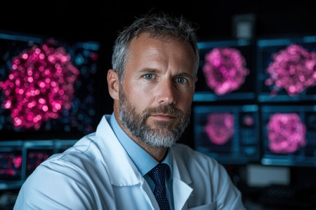 Witness oncologists and biologists collaborating on cutting-edge therapies, analyzing real-time data to fuel medical advancements Visualize dedicated scientists driving treatment innovation through data analysis and personalized medicine See how technology transforms healthcare, enhancing patient outcomes and improving care through collaborative research AI Generative