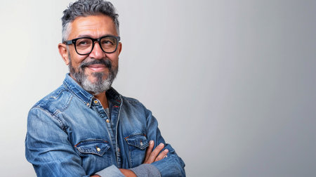 Portrait of a handsome Indian man wearing a denim shirt and glasses