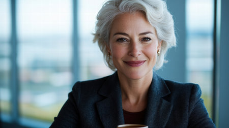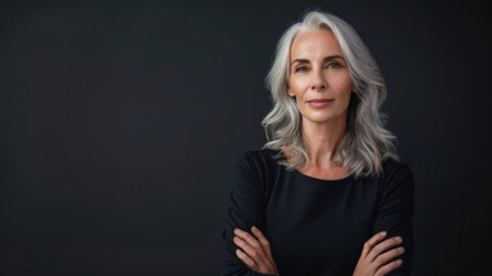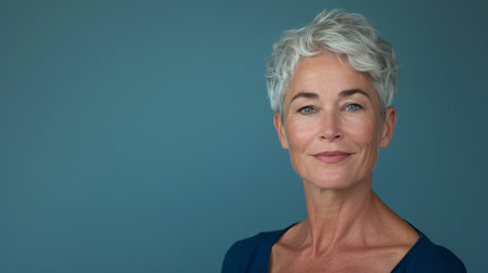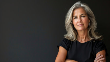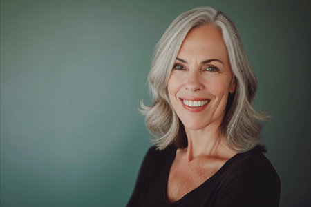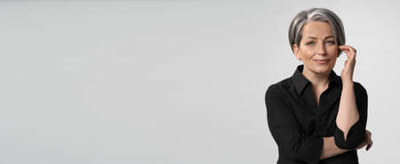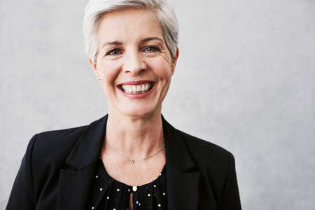 Confident mature woman with silver hair smiling
