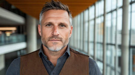 Portrait of a confident middle-aged businessman in a modern office building