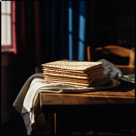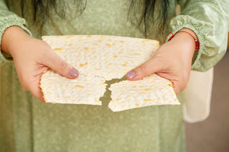 Jewish traditional holiday involving unleavened flatbread Matzah as part of Pesach celebrations