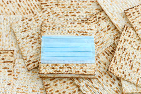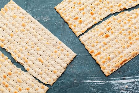 Religious matzah on the Jewish holiday of Passover, on a blue background