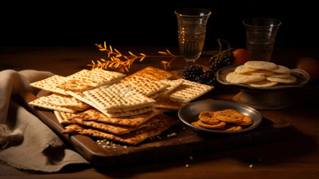 AI Generated. Traditional Jewish holiday food - Passover matzo background