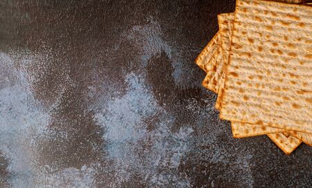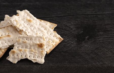 Jewish flatbread matza for Passover on dark background